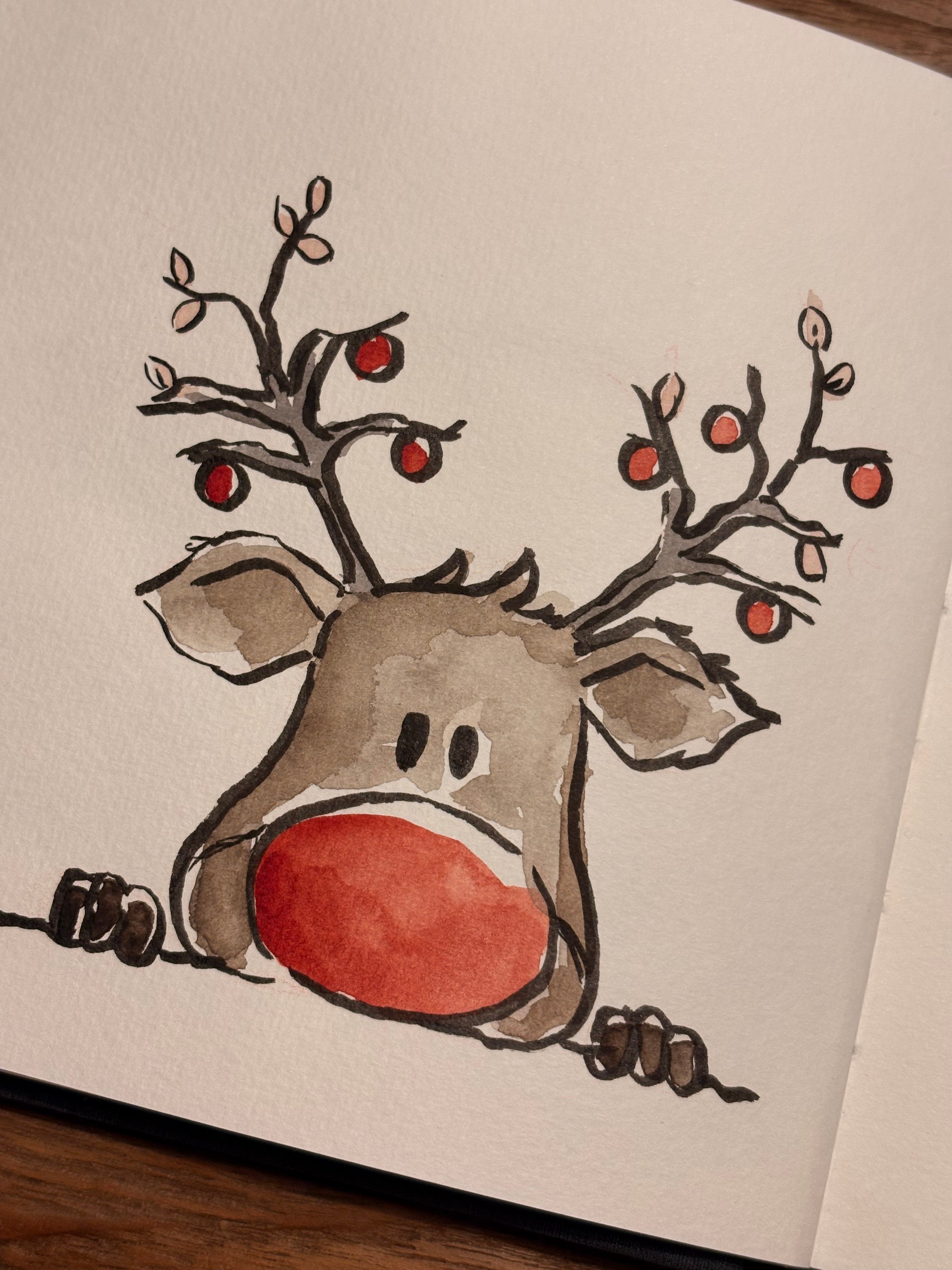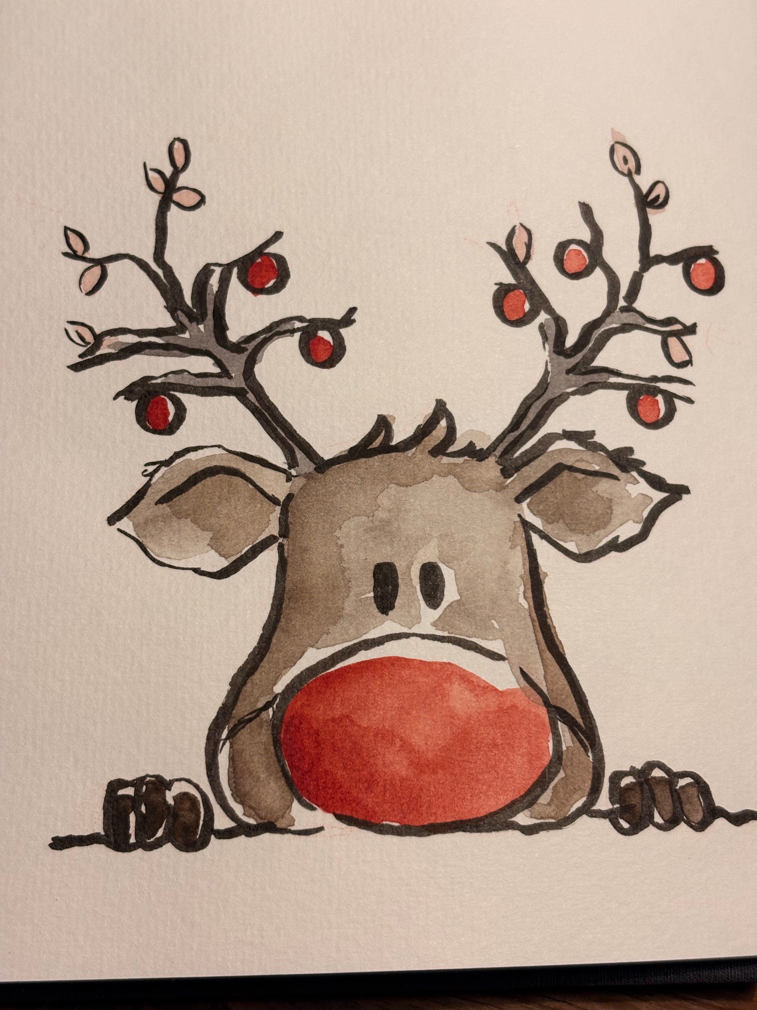 In deze les start je opnieuw vanuit basisvormen, maar ontdek je vooral hoe krachtig negatieve ruimte kan zijn wanneer je schildert. Zo creëer je eenvoudig een zachte, warme uitstraling voor jouw Rudolf.