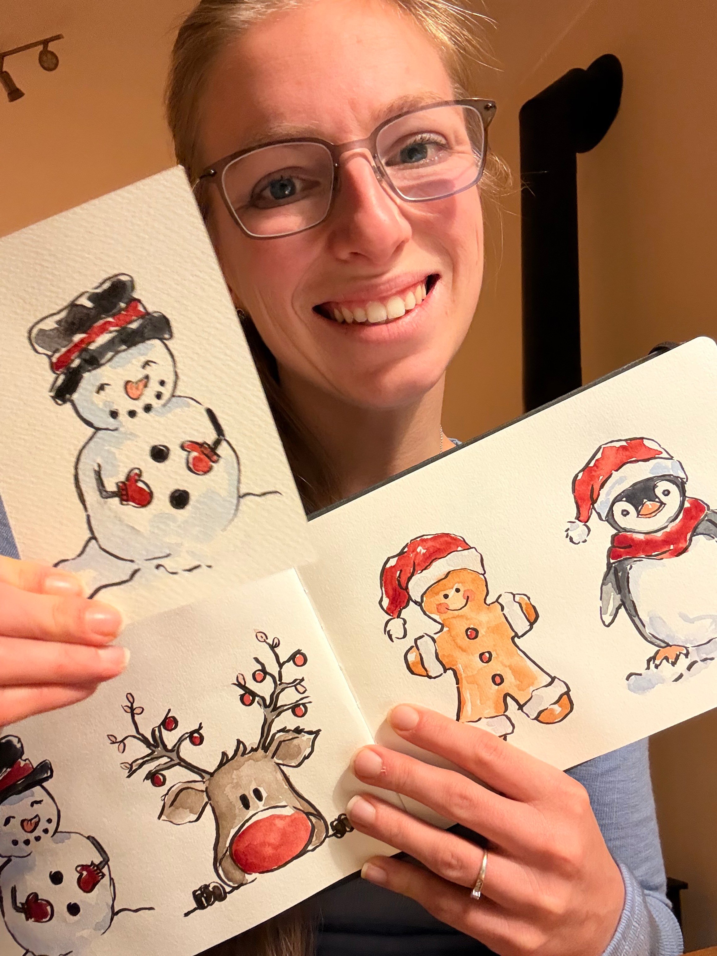 We starten met eenvoudige vormen en lijnen, zodat je meteen zelf mee kunt tekenen en al snel leuke figuurtjes op papier zet. Daarna ontdek je hoe je jouw illustraties kleur geeft en hoe je in korte tijd meerdere kaarten kunt maken. Ideaal als je nét een beetje laat bent met je kerstpost 😉